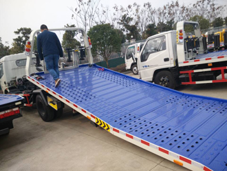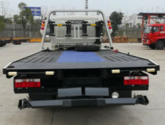 該車平板長度為5.3米(含液壓伸縮加長部份),寬2.22米,3P2A折疊沖壓式平板,帶100CM液壓伸縮式可加長平板。該車采用國標優(yōu)質碳鋼花紋板制作,平板由多塊壓制預壓板組成,10根加強型槽鋼橫梁固定,既減輕了整車重量,又增加了托舉和裝載能力。 大承載質量為2.5噸,平板 小傾斜角為8度,托舉系統(tǒng)額定托舉質量為1.2噸,采用1個4噸液壓絞盤,加粗鋼絲繩20米,一個工具箱,一個洗手箱,該車配備6個綁帶,鏈鉤一條,可選裝LED長排警燈。