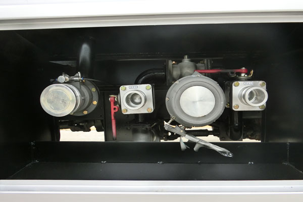罐體實(shí)際容積14.5立方,方圓罐,脹形封頭,采用優(yōu)質(zhì)碳鋼板材制作,罐體材料厚度以設(shè)計(jì)為準(zhǔn), (帶80-60泵可以自吸自排)泵進(jìn)出口按裝在正駕駛室一側(cè),兩個(gè)歐標(biāo)罐口,一個(gè)海底閥帶報(bào)警裝置,一個(gè)防溢流探桿及插座、一個(gè)廢氣回收、一個(gè)下裝油副駕駛一側(cè),升降護(hù)欄,配一個(gè)防火帽,靜電帶,兩根等長的輸油管帶陰陽接頭,兩個(gè)滅火器,兩個(gè)堵頭,帶后爬梯,鋼絲網(wǎng)走道,一個(gè)工具箱,安全告示牌,其它標(biāo)配?蛇x裝大流量加油機(jī)及帶15米自動(dòng)回位卷盤及油槍裝在大梁側(cè)邊。