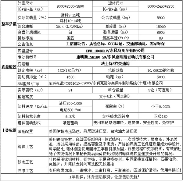 | 東風(fēng)天錦26方散裝飼料運輸車 產(chǎn)品主要技術(shù)資料 | |||
