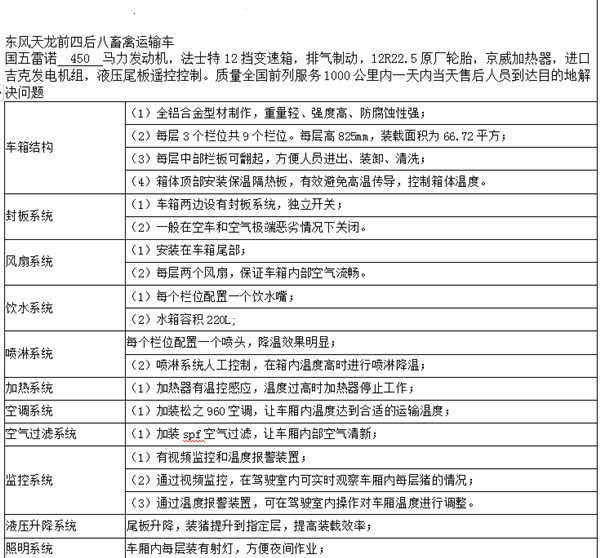 • 東風(fēng)天龍前四后八國五畜禽運輸車、9米6豬苗車