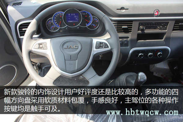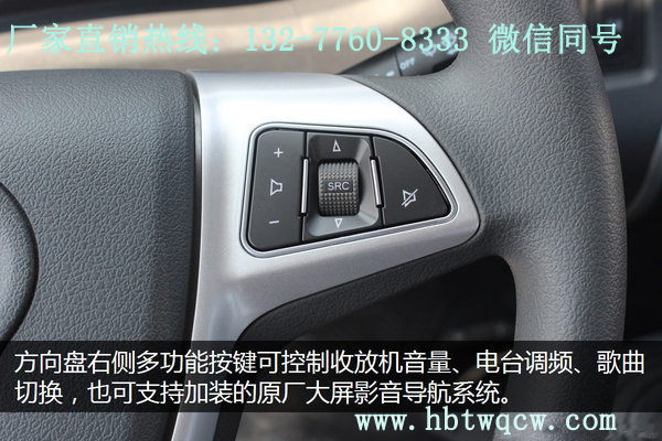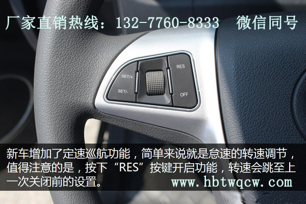 整體風格趨向于乘用車的設計,質感提升,用戶好評度更高,并且可后期加裝支持方向盤多功能按鍵操作的原廠大屏影音導航系統(tǒng)。另外可以看到,該國五新車增配了定速巡航功能,按鍵設置在方向盤左側,操作簡便。